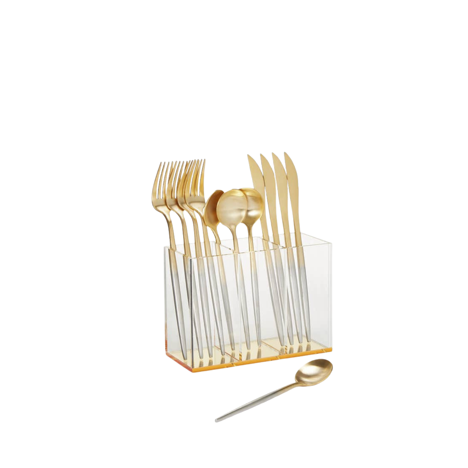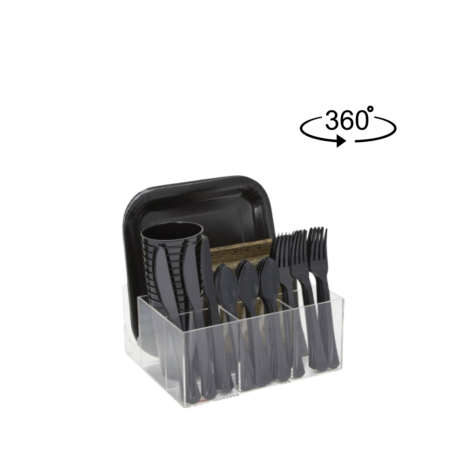 Transform your dining experience with our 6-section acrylic Caddy, the perfect solution for keeping all your flatware organized in the center of the table. To make things even easier, it features a swivel base for effortless rotation, ensuring everyone around the table has quick and easy access.