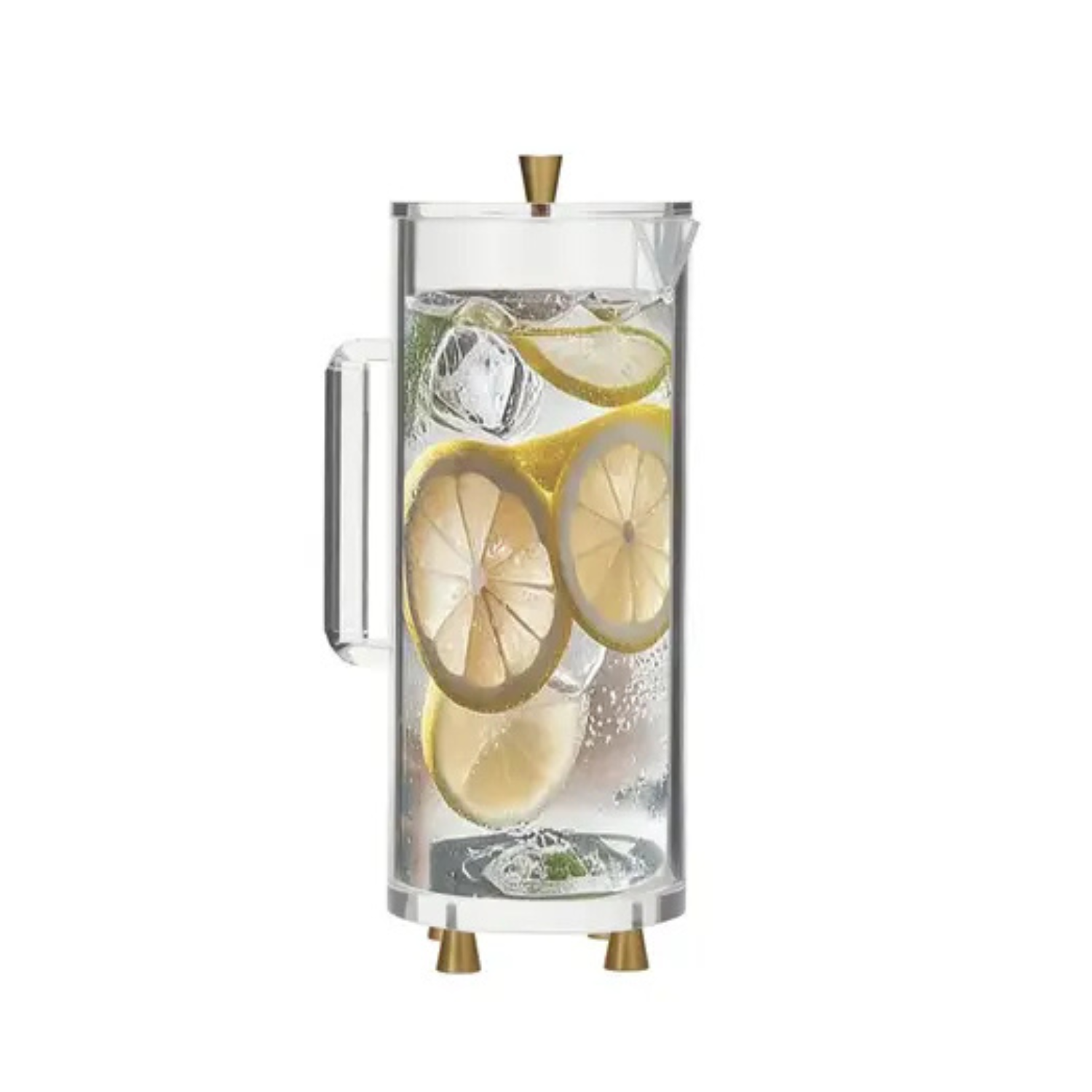 Elevate your dining experience with our Acrylic Pitcher on gold legs. Crafted with beautiful acrylic material and sturdy gold legs, this pitcher adds a touch of sophistication to your table setting. Perfect for serving your favorite beverages in style.