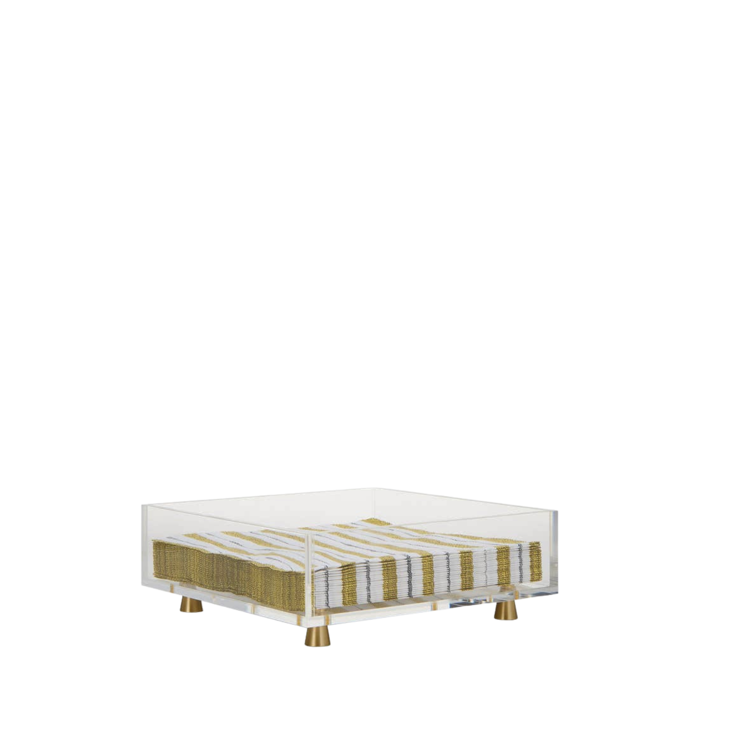 Elevate your table setting with our Acrylic Rectangular Napkin Holder! Keep your napkins neatly arranged and within easy reach, while the daringly chic gold legs inject a dose of glamour into your dining experience.
